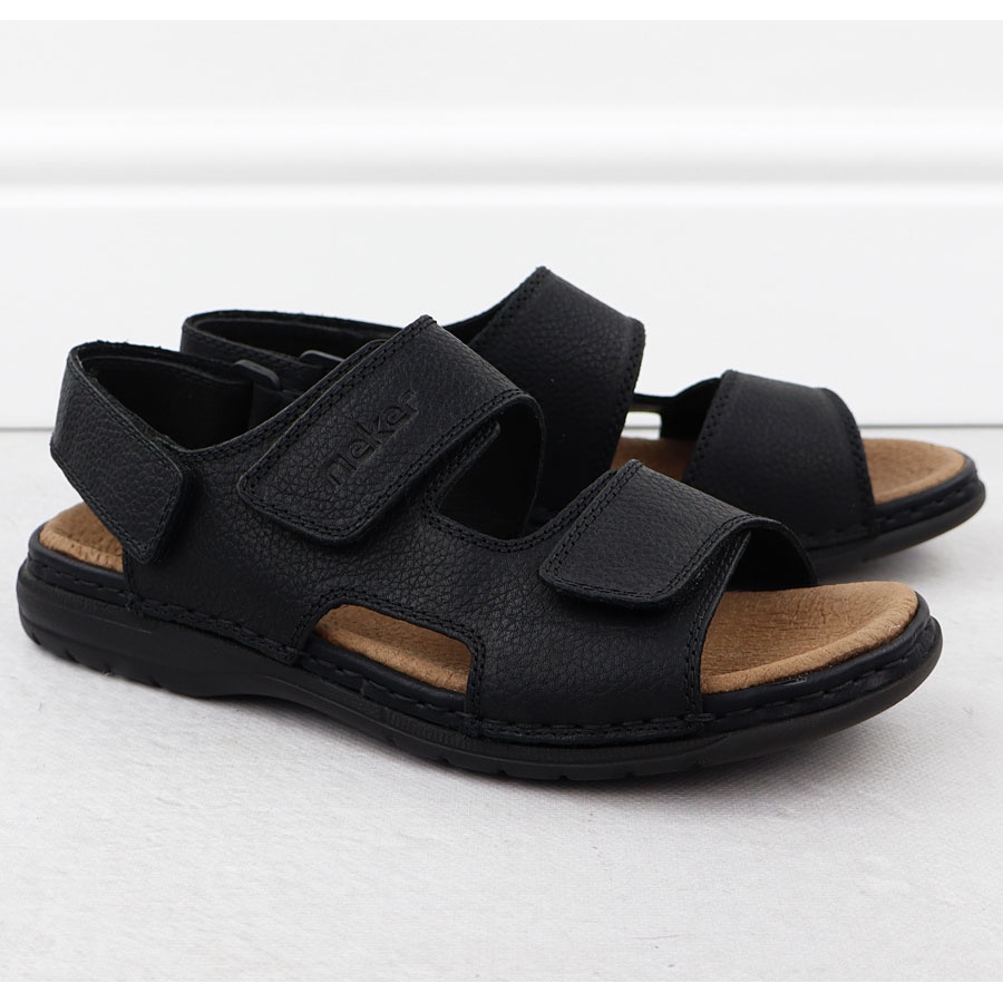Részletek: Bőr férfi kényelmes fekete szandál fekete rieker 25558-01