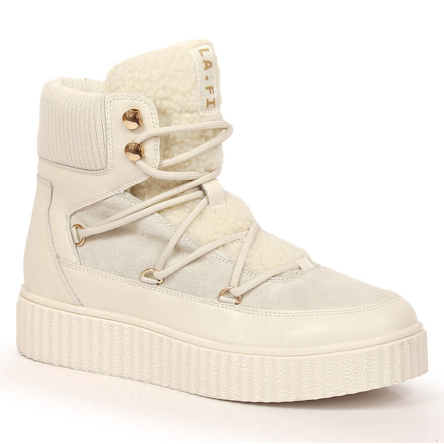 Részletek: Bőr fűzős csizma világos bézs Laura La.Fi platformon