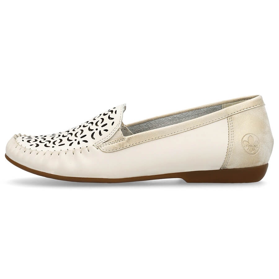 Részletek: Bőr kényelmes cipő, női áttört mokaszin, bézs Rieker L6350-60