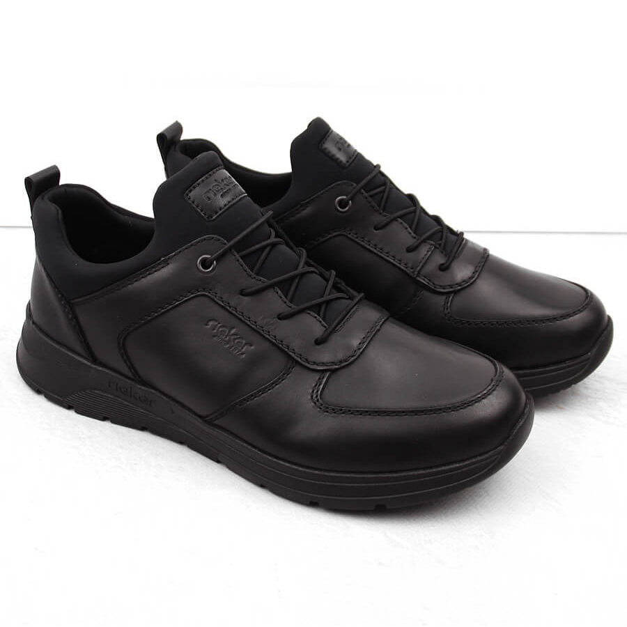Részletek: Bőr kényelmes férfi fekete bebújós cipő Rieker 39653-00