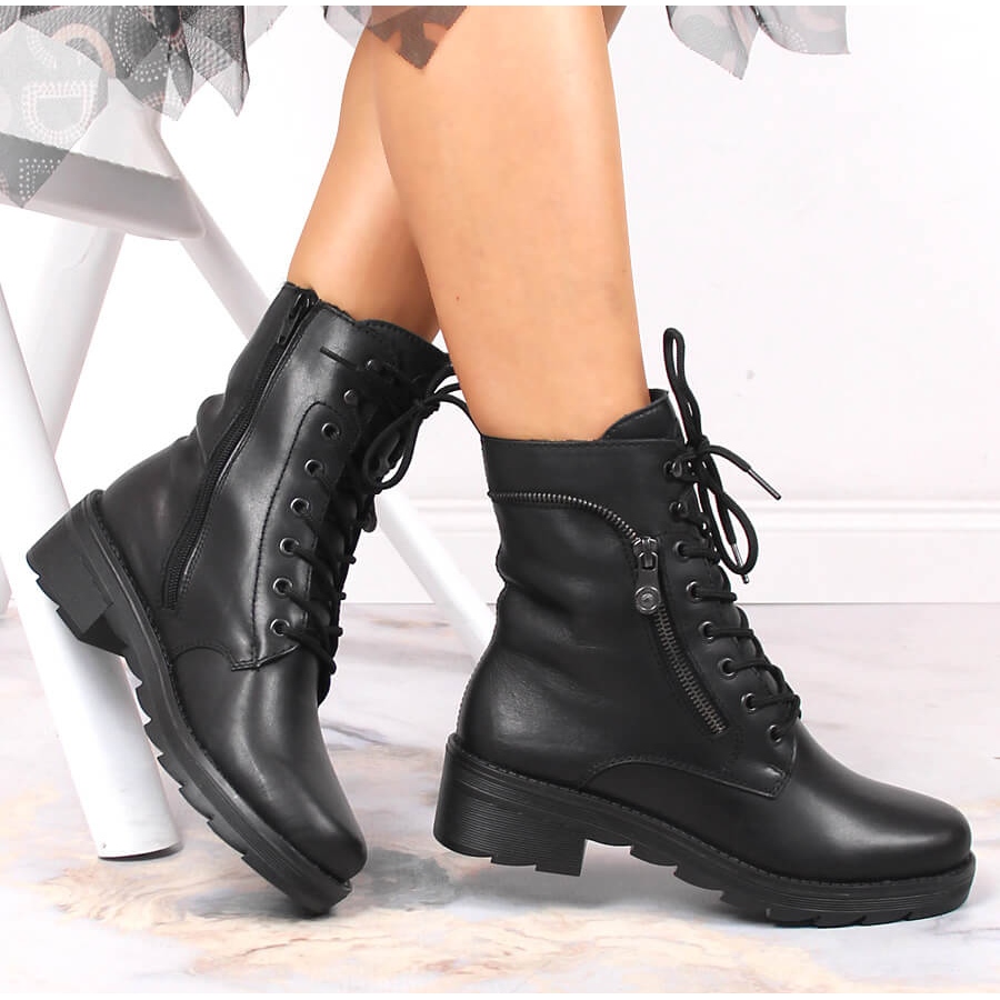 A Rieker X0500-00 csizmák praktikus fűzős rögzítéssel rendelkeznek, amely lehetővé teszi, hogy a lábbelit az egyéni igényeihez igazítsa. A kerek orr lehetővé teszi az ujjak szabadságát, a domináns minta hiánya pedig időtállóvá és univerzálissá teszi ezeket a cipőket.