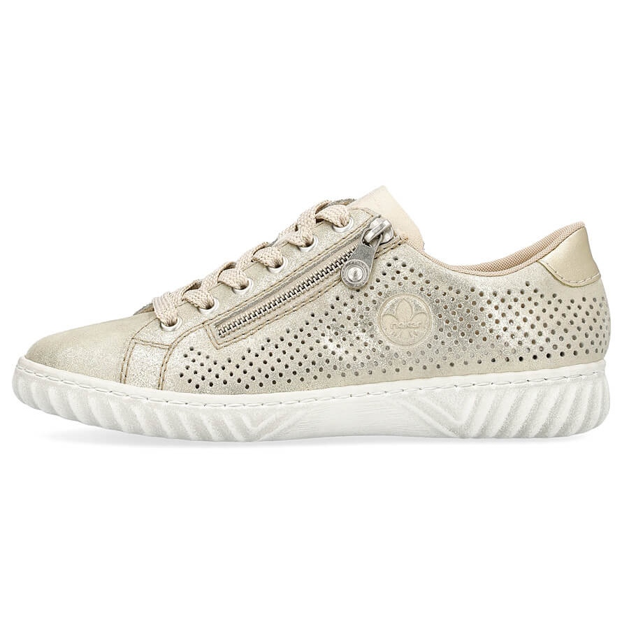 Részletek: Bőr kényelmes női sportcipő, fényes, bézs Rieker N0901-62