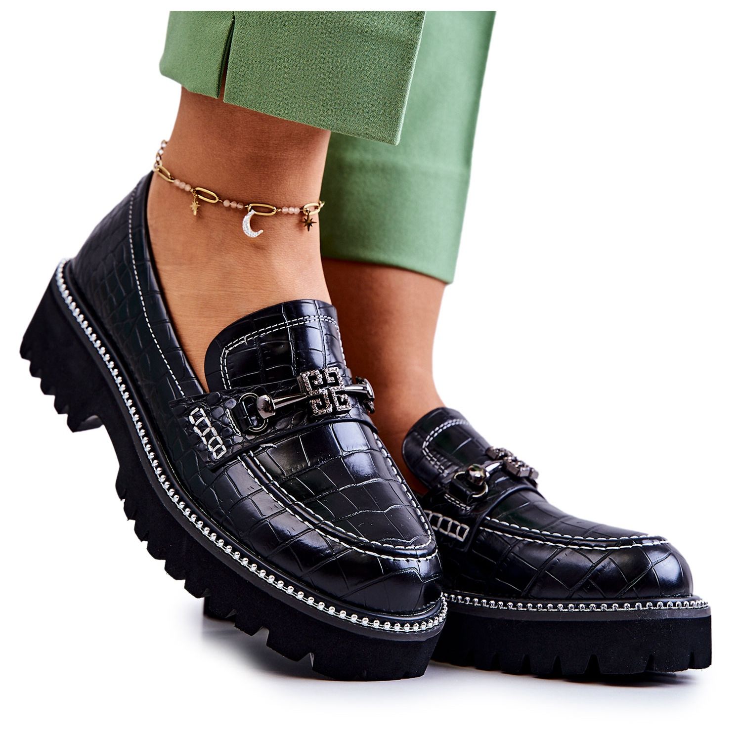 **Kígyóbőr cipő díszítéssel, fekete Adison a S.Barskitól**