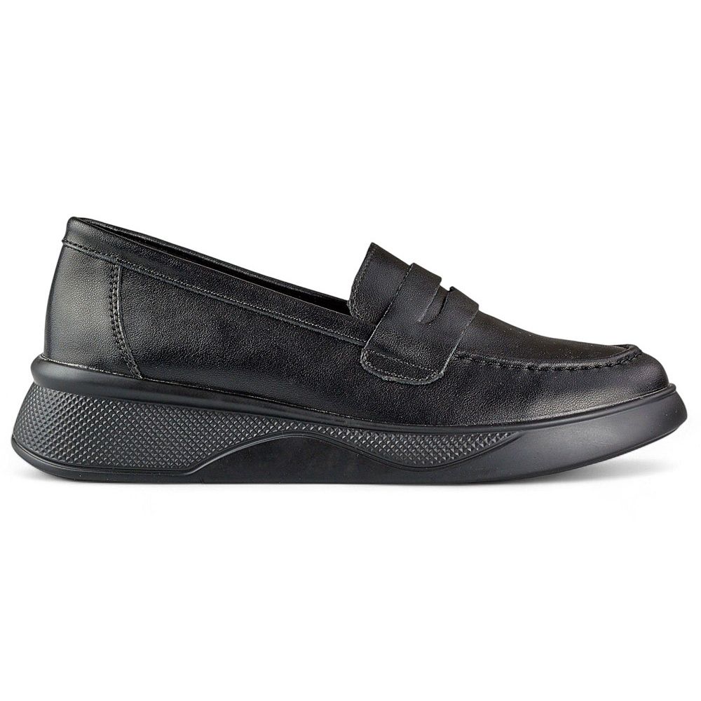 Részletek: Bőr klasszikus fekete női cipő kényelmes platformon