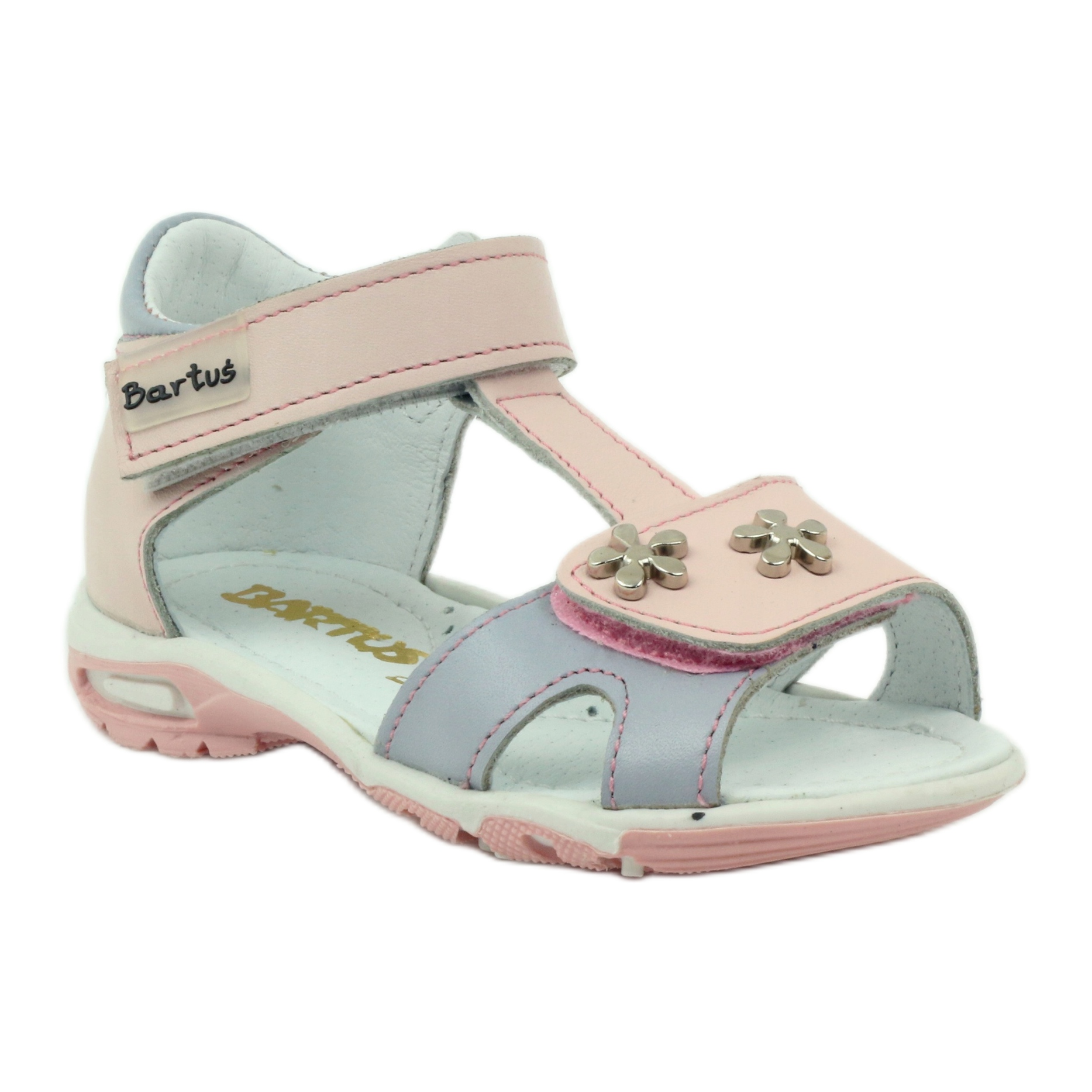 Bőr lány szandál Bartuś modell. 138 - rózsaszín és szürke
