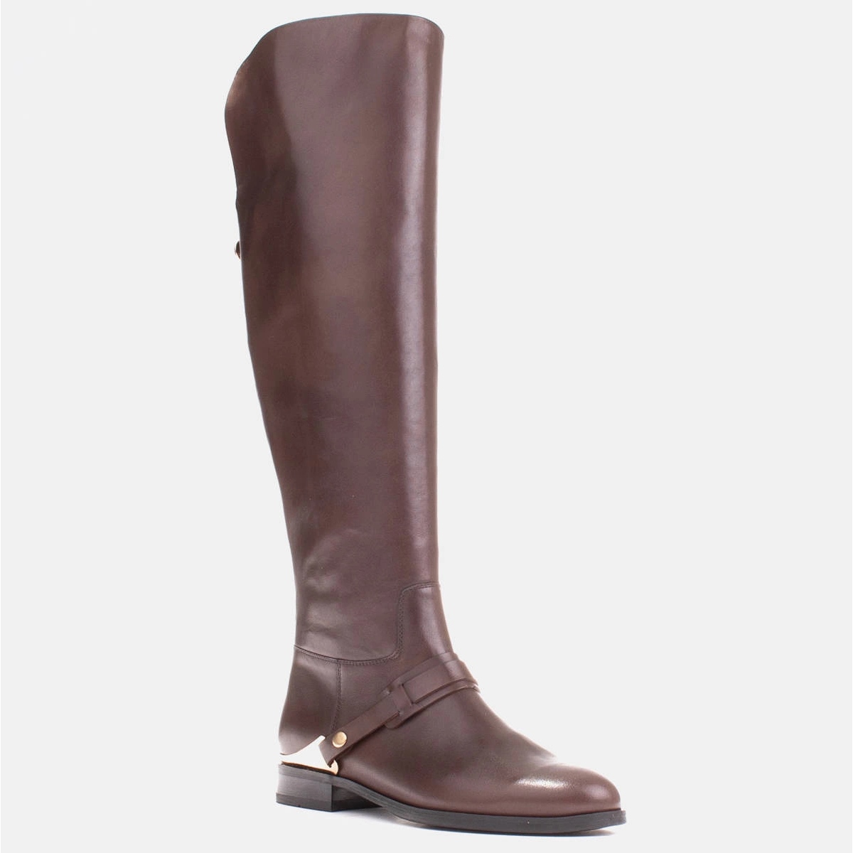 Marco Shoes Marco Shoes Bőr lovaglócsizma aranylemezzel barna