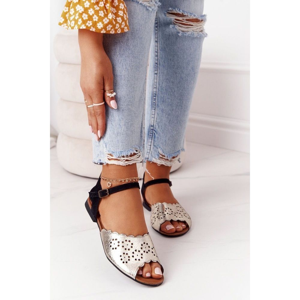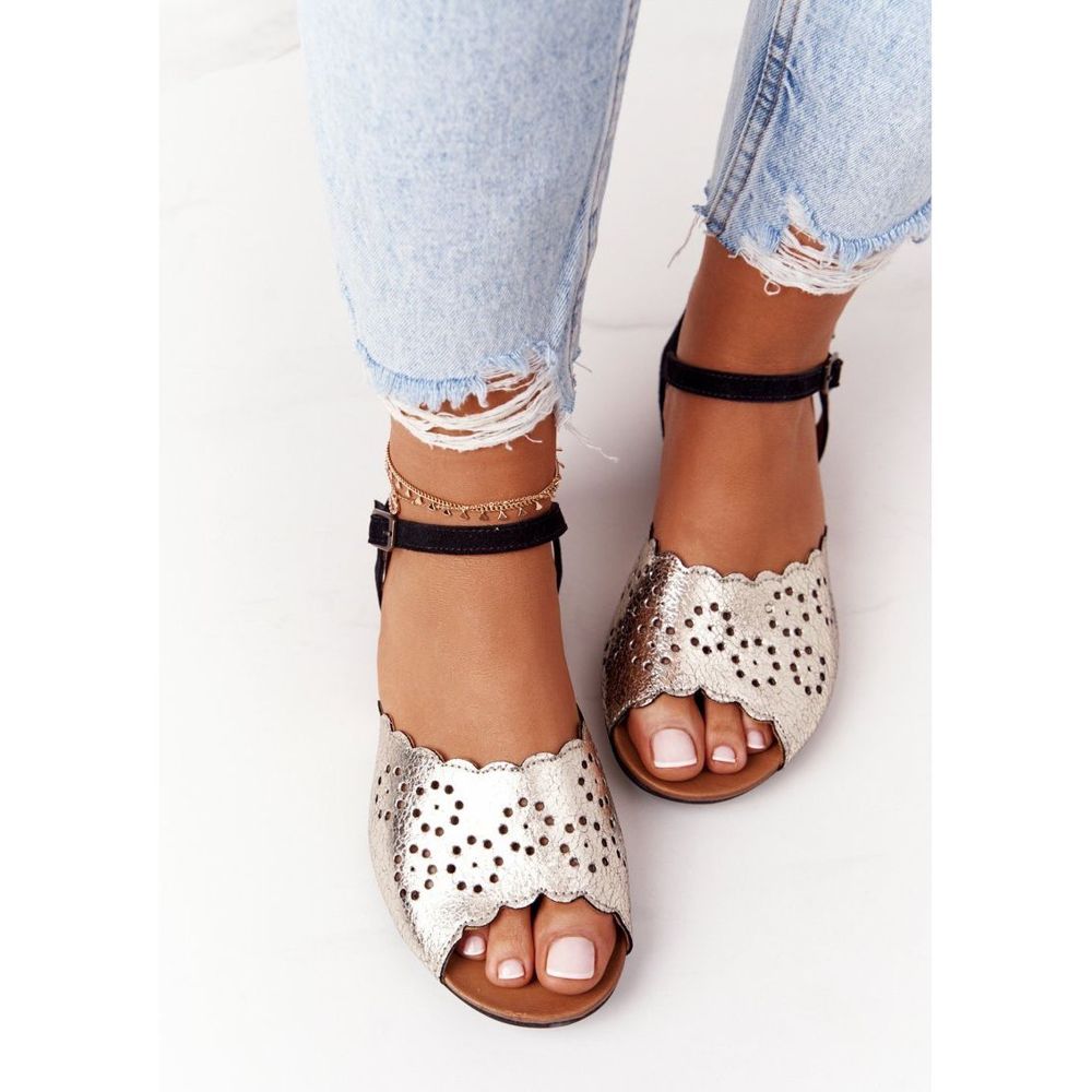 Részletek: Bőr Maciejka 05199-25 Fekete és arany szandál aranysárga