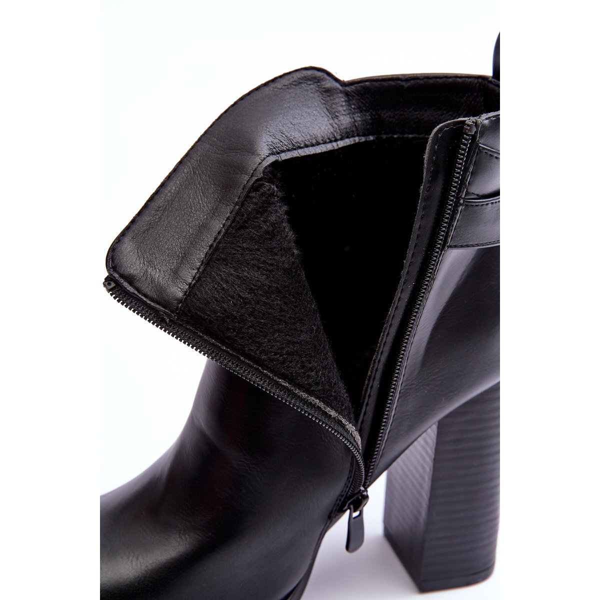 Ez a kiváló minőségű ökobőrből készült fekete bokacsizma nem csak kifejező megjelenésével hívja fel magára a figyelmet, de kifogástalan viselési kényelmet is biztosít. A 11 cm-es sarokmagasság elegánsan meghosszabbítja a lábakat, a stabil támasz pedig egész napos használat során is kényelmet garantál. A cipő hatékony felhúzása a felsőrész oldalára szerelt cipzárnak köszönhető, amely diszkrét és egyben funkcionális.