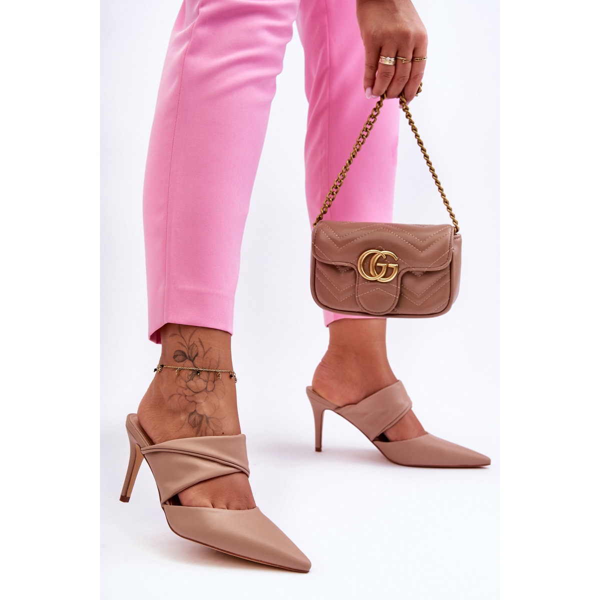 inna Inna Bőr magassarkú papucs Sötét bézs Aveline