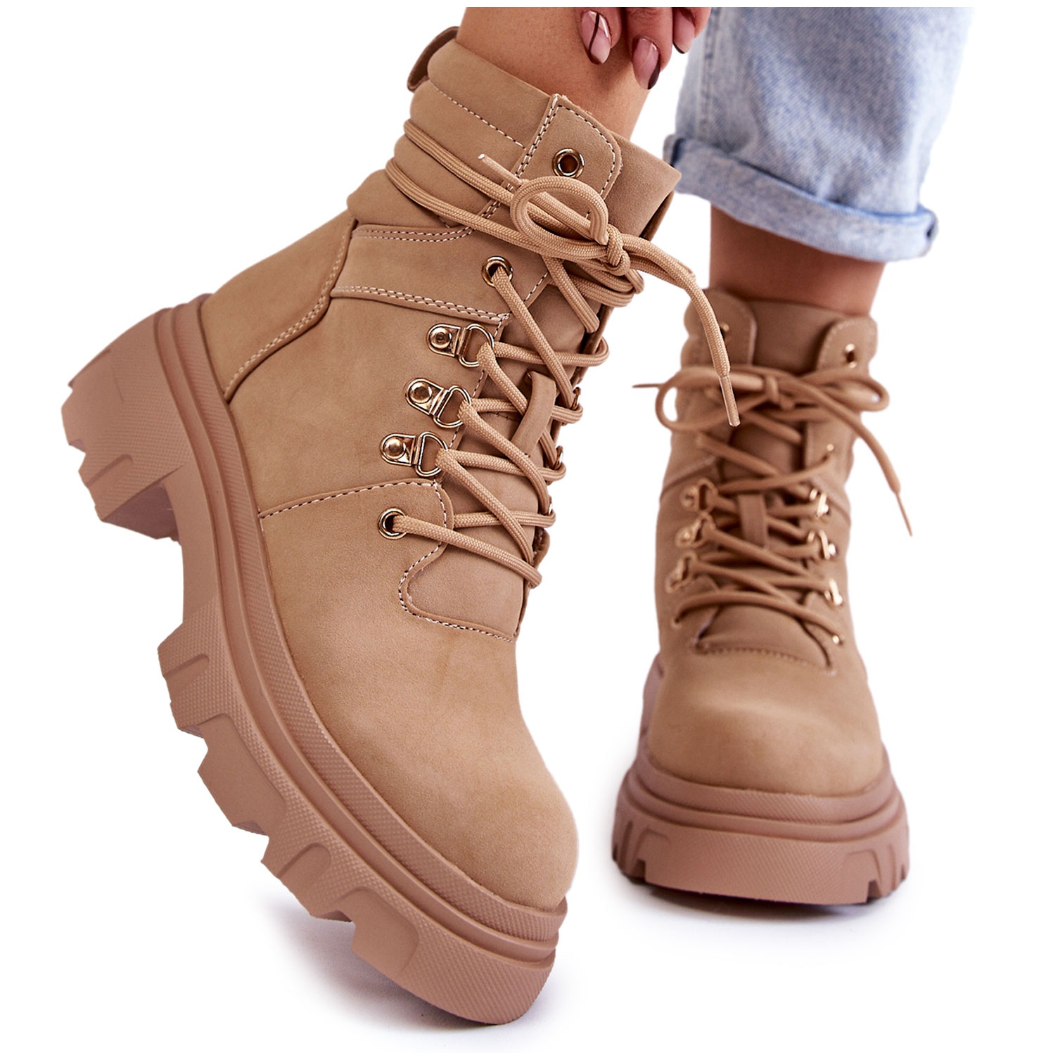 Részletek: Bőr, meleg fűzős csizma Bézs Merisha