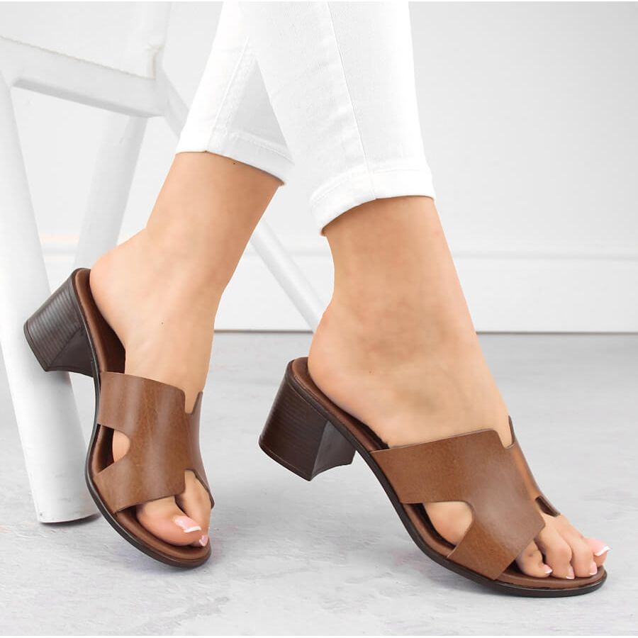 Részletek: Bőr női barna magas sarkú papucs Potocki 64300