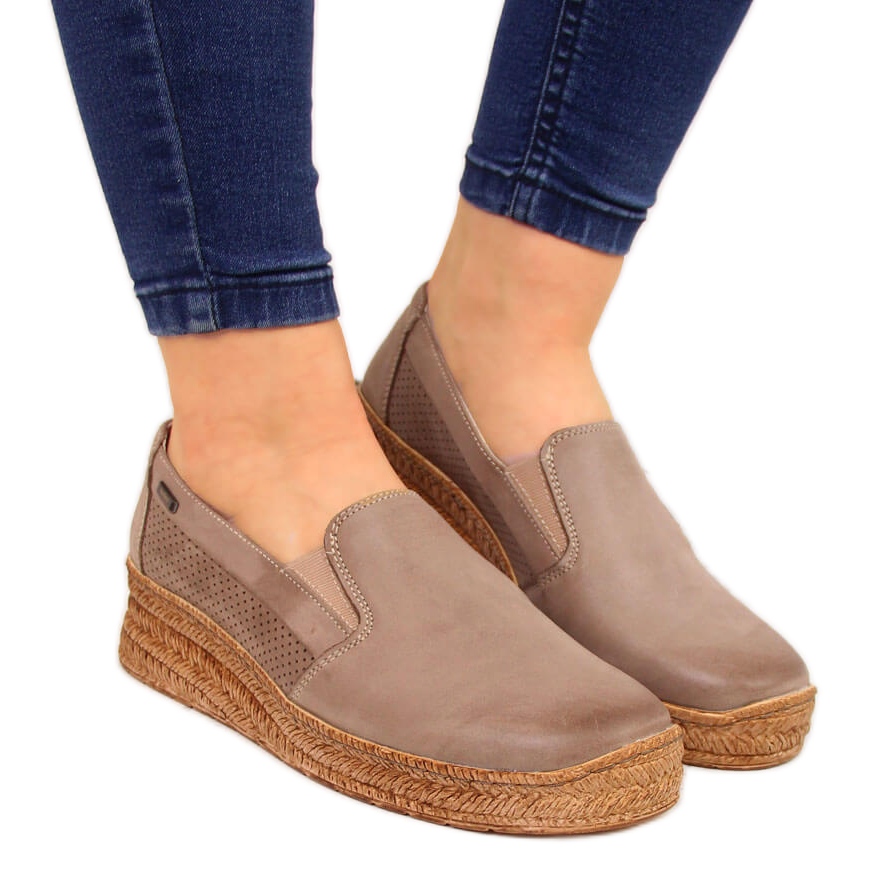 Részletek: Bőr női cipő bézs ékkel Helios 350
