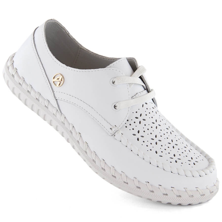 Bőr női cipők, fűzős mokaszinok, fehér, Artiker 54C-1520, tökéletes választás minden nő számára, aki értékeli a kényelmet és a stílust. Ezek az elegáns cipők, amelyeket a neves ARTIKER márka gyárt, ötvözi a modern dizájnt és a kiváló minőségű kidolgozást.