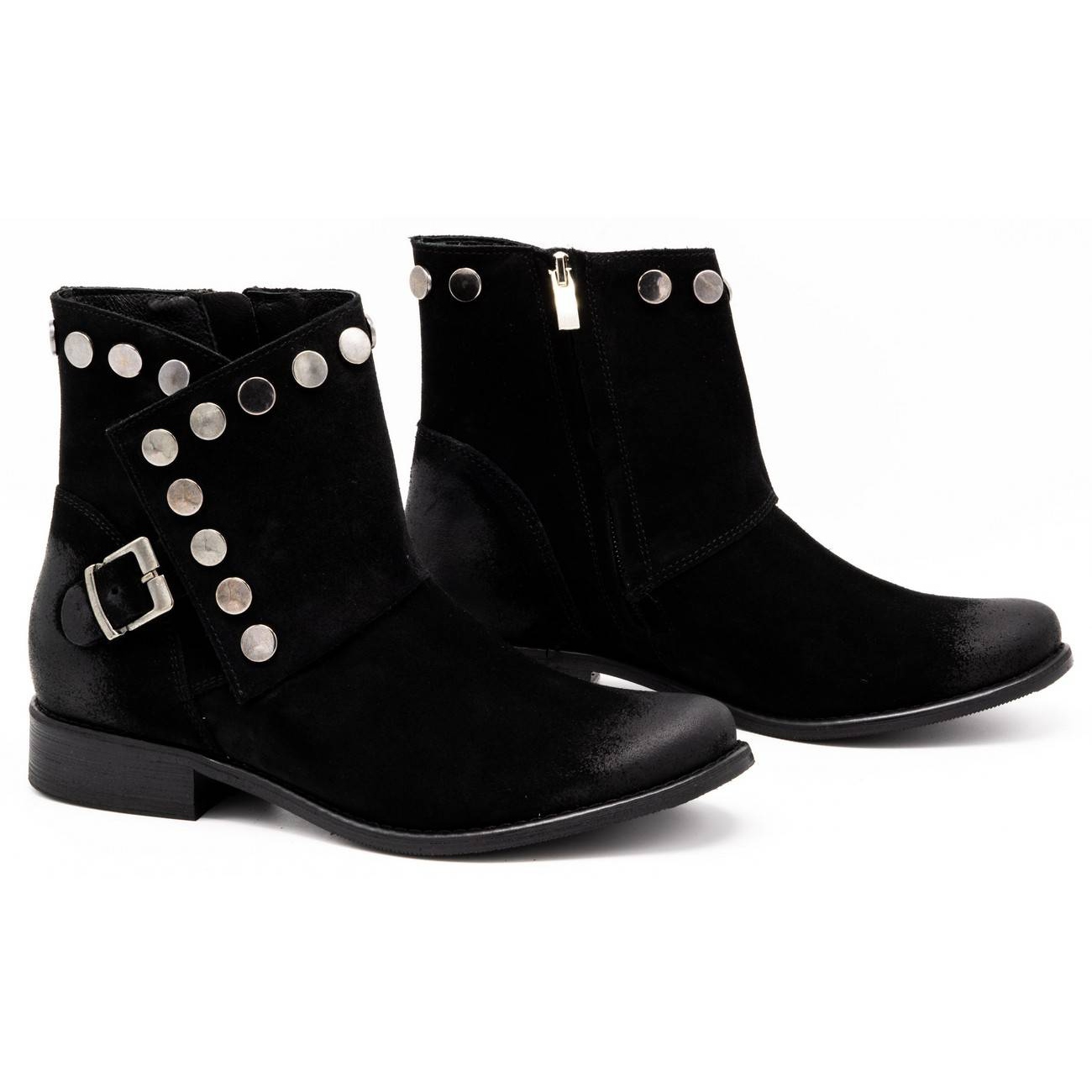 Exquisite Exquisite Bőr női csizma csapokkal 1198 fekete