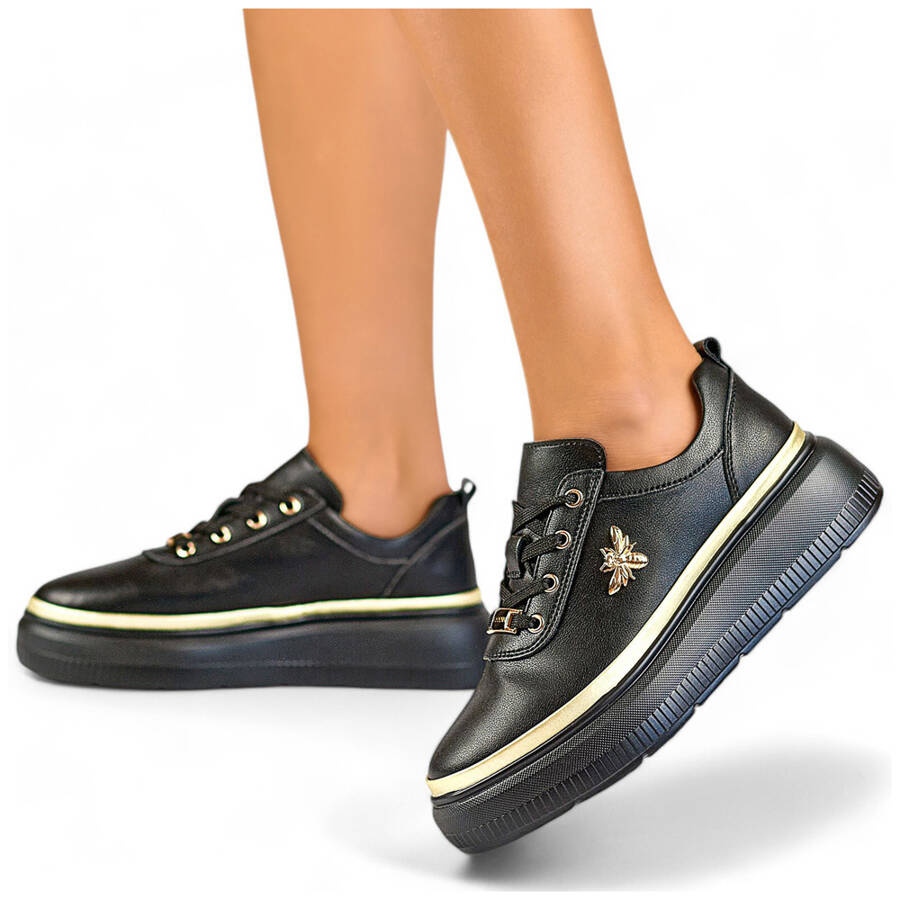Inna marka Bőr női sportcipő a platformon, fekete GD-XF120C-B