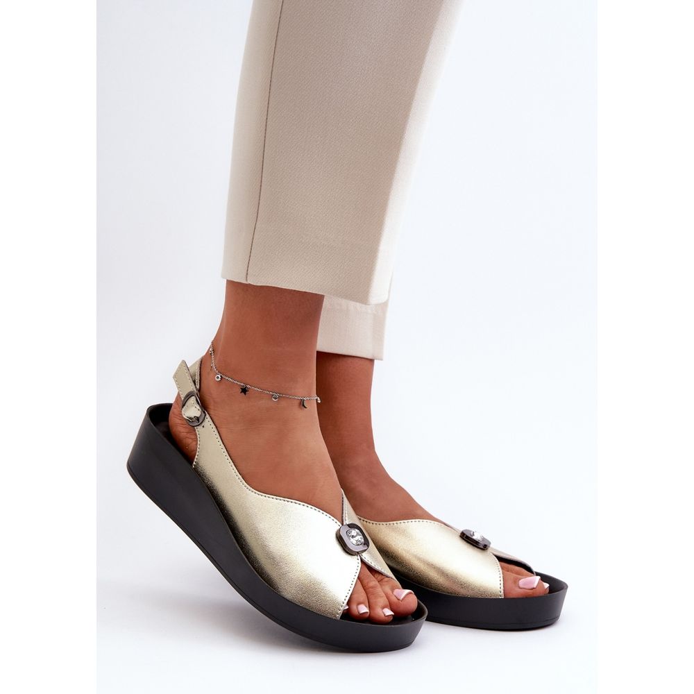 S.Barski Bőr női szandál éken és platformon S.Barski KV27-020 arany aranysárga