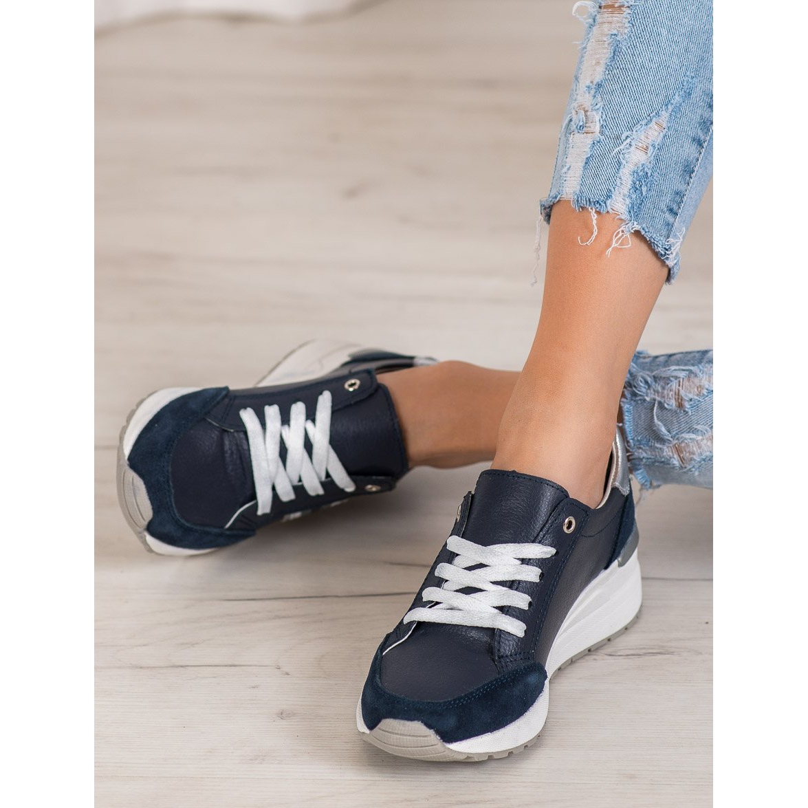 Fedezze fel az egyedi stílust és kényelmet a tengerészkék és fehér színekben pompázó Filippo bőr sportcipőkkel. Ez a lábbeli tökéletes a mindennapi használatra, eleganciát és kényelmet kínál, amelyet minden nő értékelni fog.