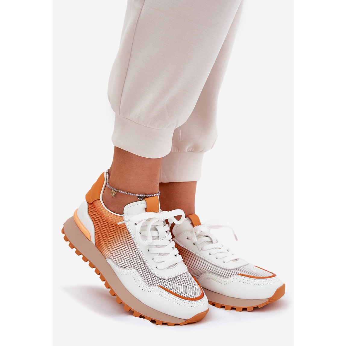 Részletek: Bőr sportcipő VinceZA 66775 női hálóval narancs