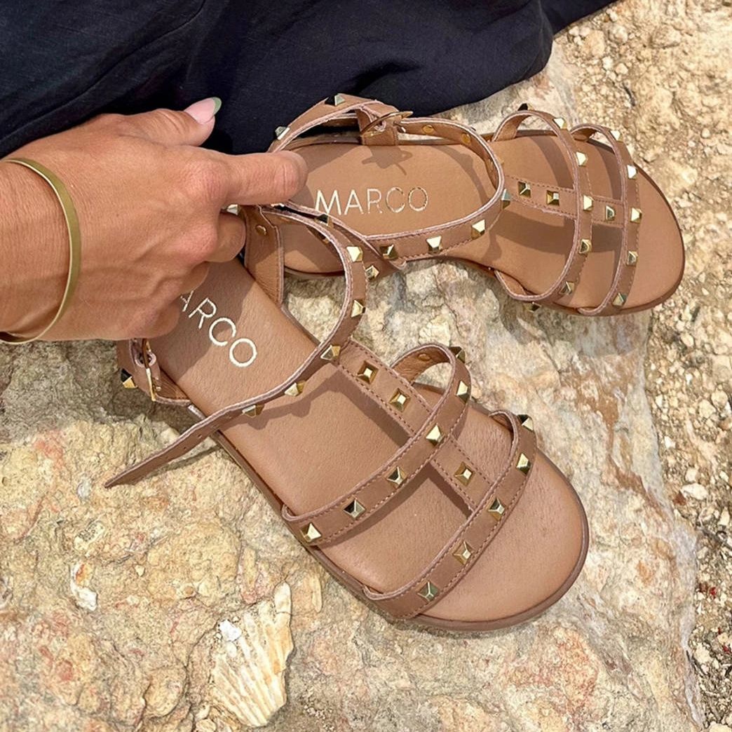 Részletek: Marco Shoes Bőr szandál arany szegecsekkel barna
