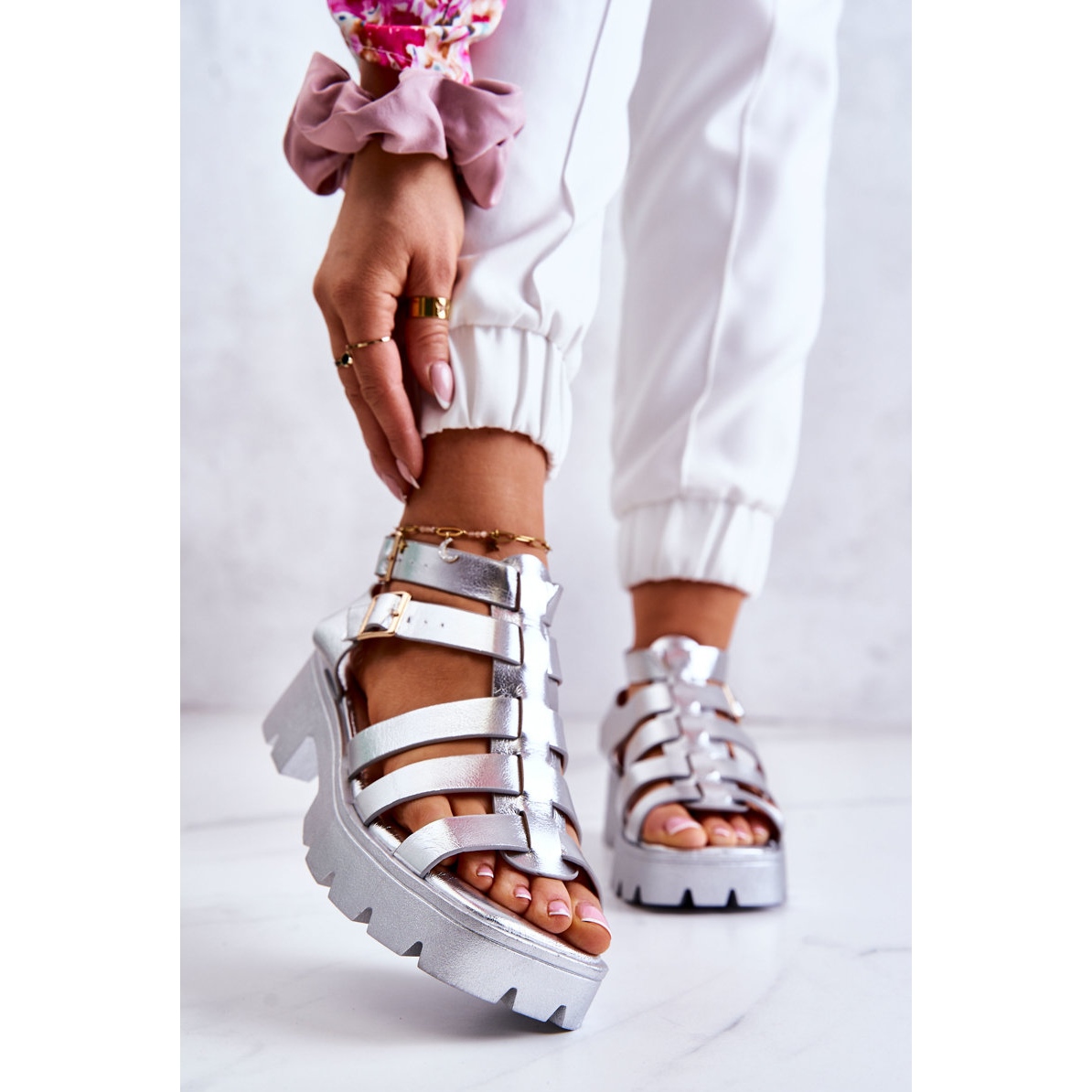 PS1 PS1 Bőr szandál csíkokkal Silver Minorite ezüst