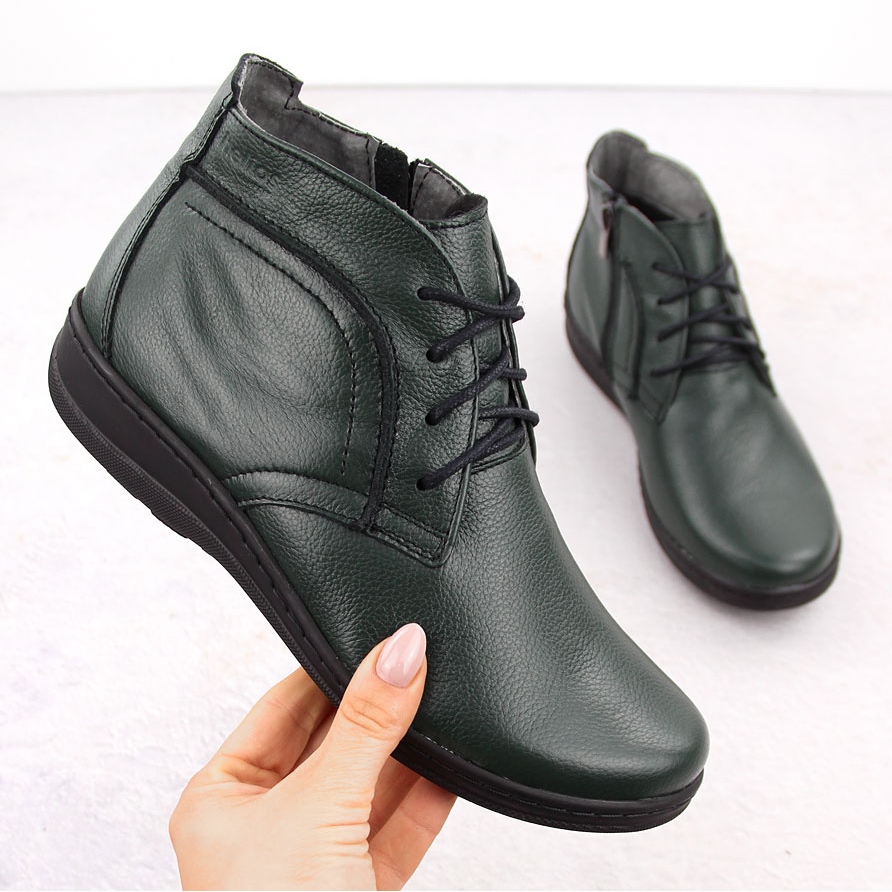 Részletek: Bőr szigetelt bokacsizma, zöld Helios 612-2