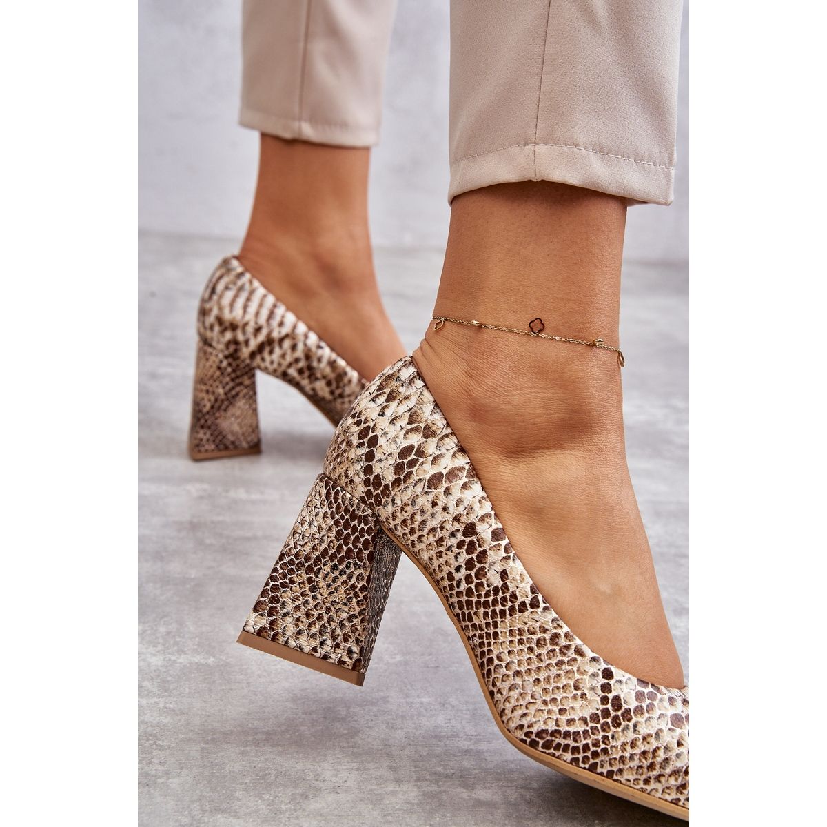 Lewski Shoes Lewski Shoes Bőr szivattyúk kígyómintás bal cipő 3277 bézs-arany aranysárga