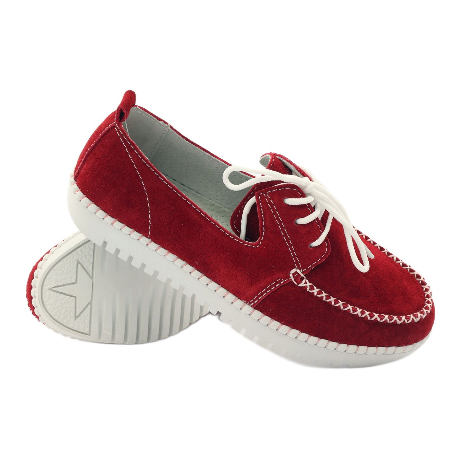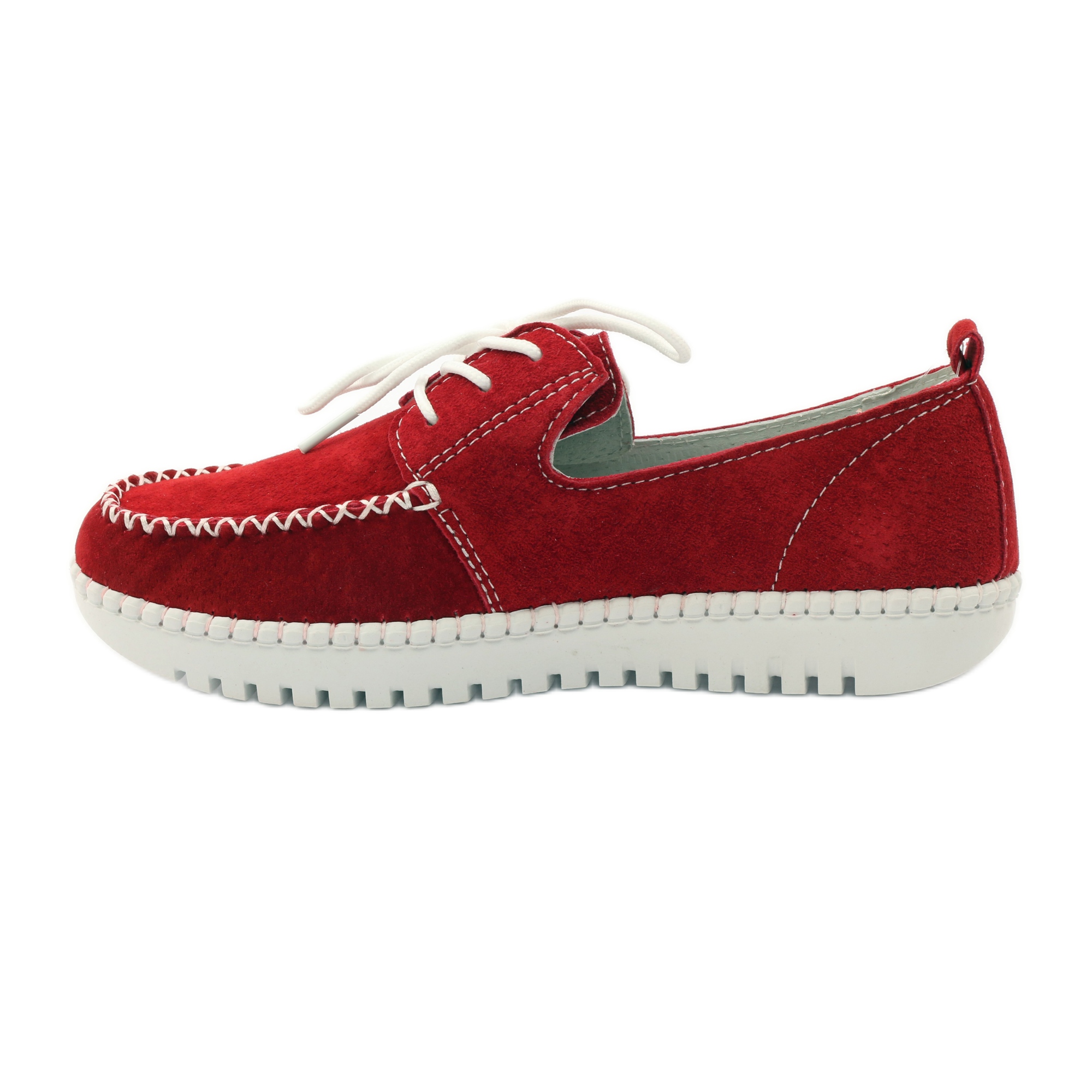 A legjobb minőségű természetes velúrbőrből készült mokaszinok nem csak szemet gyönyörködtetnek, de tartósságot és kényelmet is garantálnak. A piros, fehér díszvarrással díszített felsőrész karaktert ad nekik, a fűzős rögzítés pedig tökéletes illeszkedést tesz lehetővé a lábfejhez, karcsúbb és testesebb alkatúaknak egyaránt.