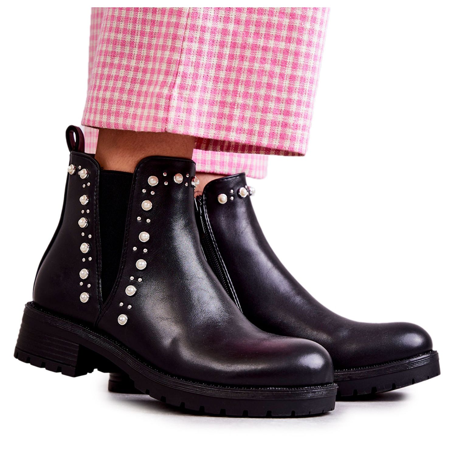 Fedezze fel az egyedi stílust és kényelmet a fekete színű PG1 Leather Workers csizmával. Ez az elegáns, felbújós női bokacsizma a divatos dizájn és a praktikum tökéletes kombinációja. Kiváló minőségű ökobőrből készültek, rendkívül lenyűgöző megjelenésűek, a felsőrészen található dekoratív fúvókák és gyöngyök egyedi karaktert kölcsönöznek nekik.