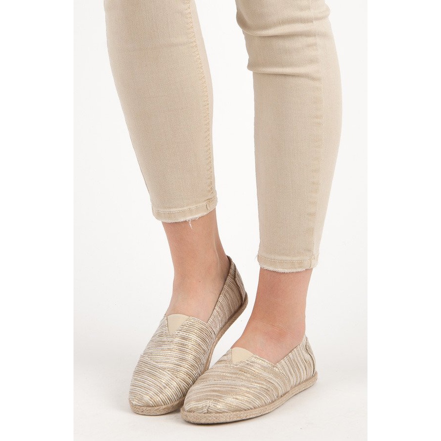 Az espadrillák teteje vonzó csíkos mintázatú anyagból készült, amely könnyedséget és frissességet kölcsönöz nekik. A kerek orr kényelmes viseletet tesz lehetővé, a bebújós zárás pedig rendkívül egyszerűvé teszi a cipők fel- és levételét.