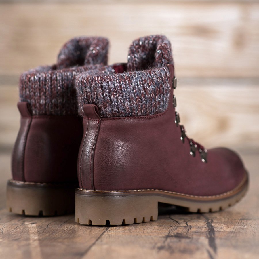 Részletek: SHELOVET Bordó fűzős csizma piros