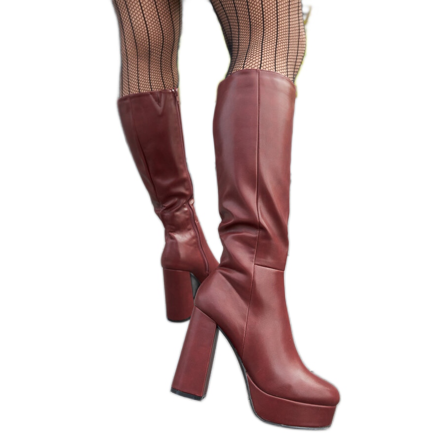 Elegáns csizmák, amelyek térdre nyúlnak egy mély bor árnyékában (Burgundy/Red). Ökológiai bőrből készül, mandula orrával és kényelmes cipzárral - tökéletes az őszi erőszakos évszakhoz. A 12 cm -es platform és a bár sarok csatlakozása biztosítja a stabilitást, és néhány centiméter hozzáadja az ábrát anélkül, hogy feladná a kényelmet.