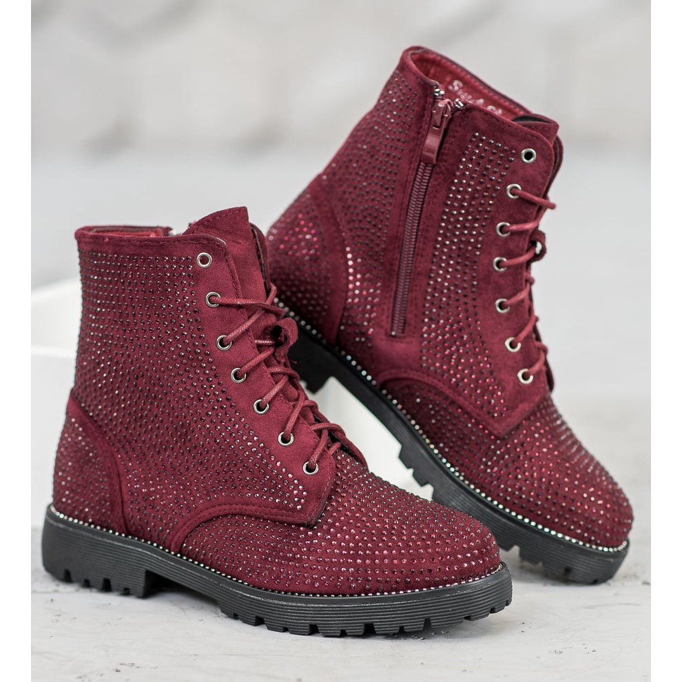 **Sweet Shoes bordó velúr bokacsizma piros**