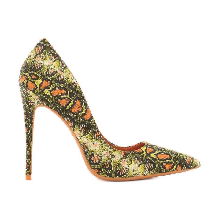 A Vices 5143-26 szivattyúk tökéletes választást jelentenek különféle alkalmakra - az üzleti találkozóktól az esti kirándulásokig. Az intenzív színekkel - narancssárga, zöld és sárga - kombinált állati motívumokat tartalmazó minta eredetiséget és stílusos használatot kölcsönöz.
