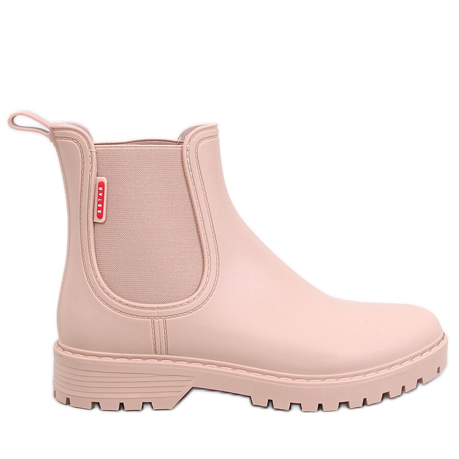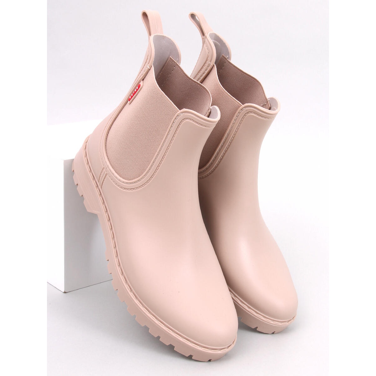 Női gumi csizma tőrvel, finom, matt bézs árnyalatban vágva. A klasszikus vágás, az oldalán rugalmas betétekkel, megkönnyíti a gyors és kényelmes felhelyezést. A boka számára, kerek orrral és lapos talppal - tökéletes az esőben és a mindennapi sétákhoz, a gyakorlati stilizációkhoz.