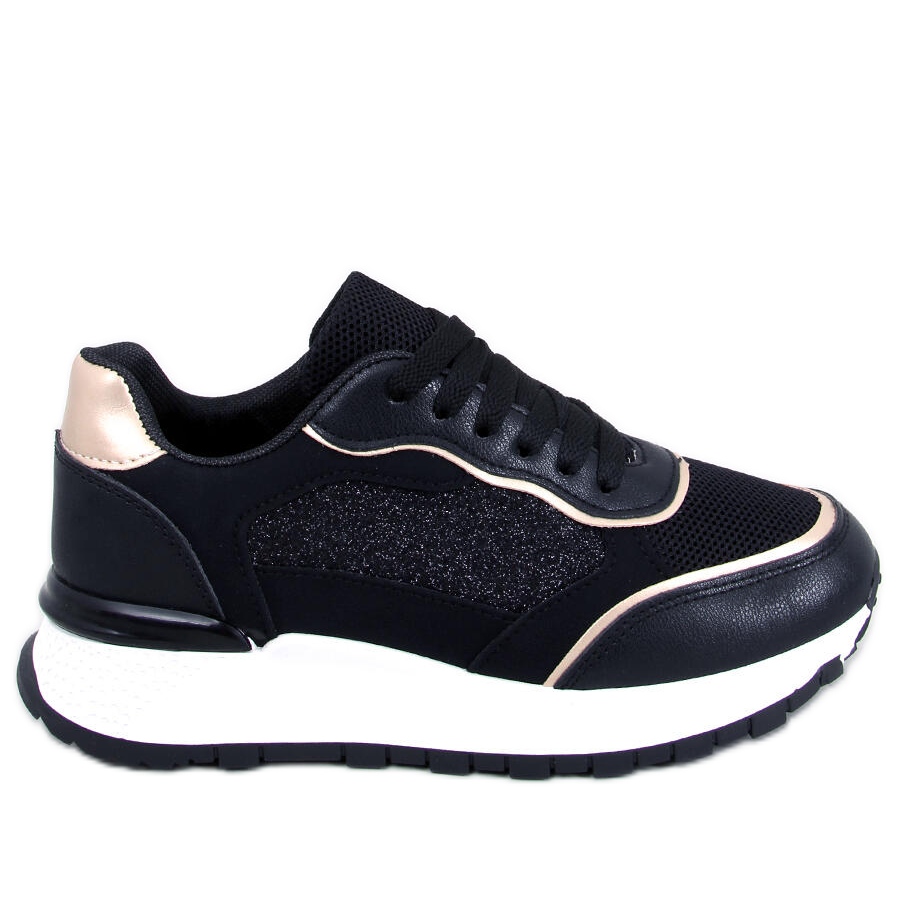 A Brand Black Sports Women sport cipők, látványos, magas talpú (kb. 5,5 cm -es platform), amely minden nap egyesíti a divatos megjelenést a kényelemmel. A formás vágást fém- és csillogó betétekkel egészítették ki, amelyeknek a cipő kiválóan alkalmas mind alkalmi, mind kifejezőbb stilizációkhoz.