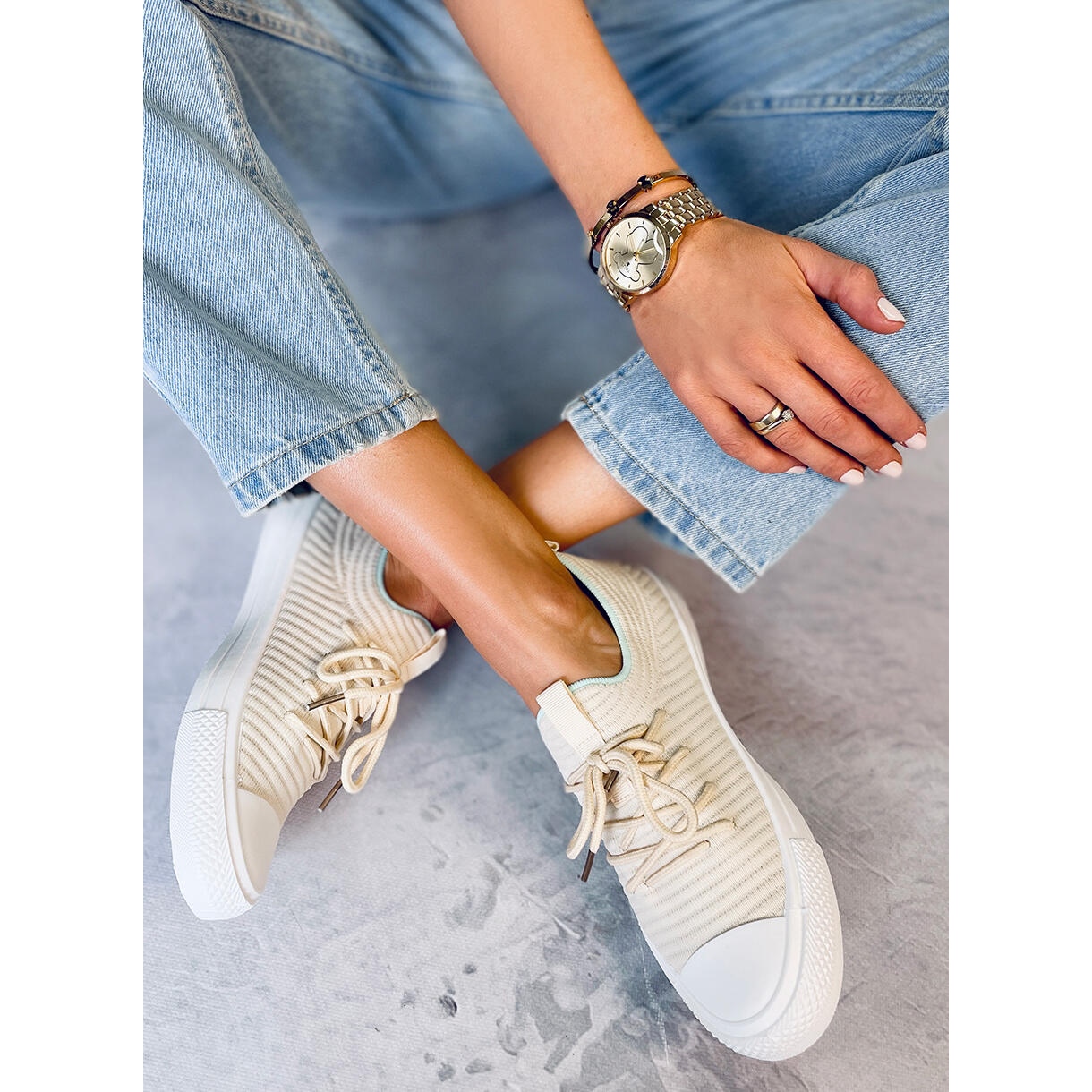 Ez a modell az univerzális stílust egy kicsit sportos karakterrel ötvözi, így alkalmi kirándulásokhoz és edzésekhez egyaránt remek választás. A bézs színnek és a sima mintának köszönhetően a cipők könnyen kombinálhatók különféle stílusokkal, könnyedséget és frissességet adva hozzá.