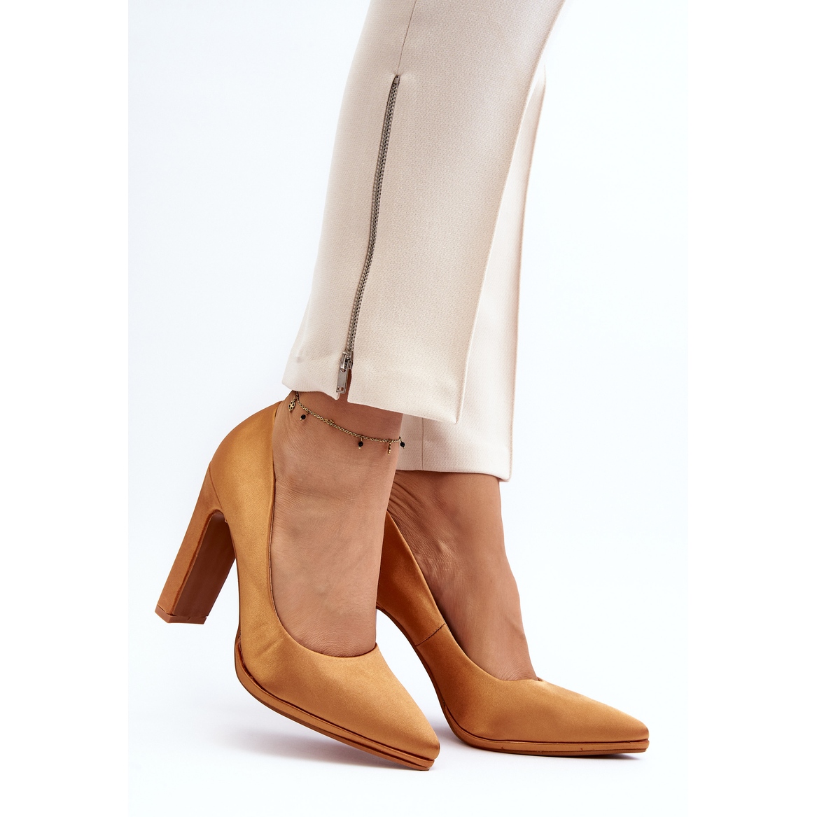 Az anyag, amelyből a pumpák készülnek, egy kiváló minőségű textilszövet, amely tökéletesen utánozza a szatént, luxus megjelenést kölcsönözve a cipőknek. A gyártó által javasolt egyedi "CAMEL" szín egy univerzális barna árnyalat, amely sok színhez passzol, és könnyen integrálható különféle stílusokba.
