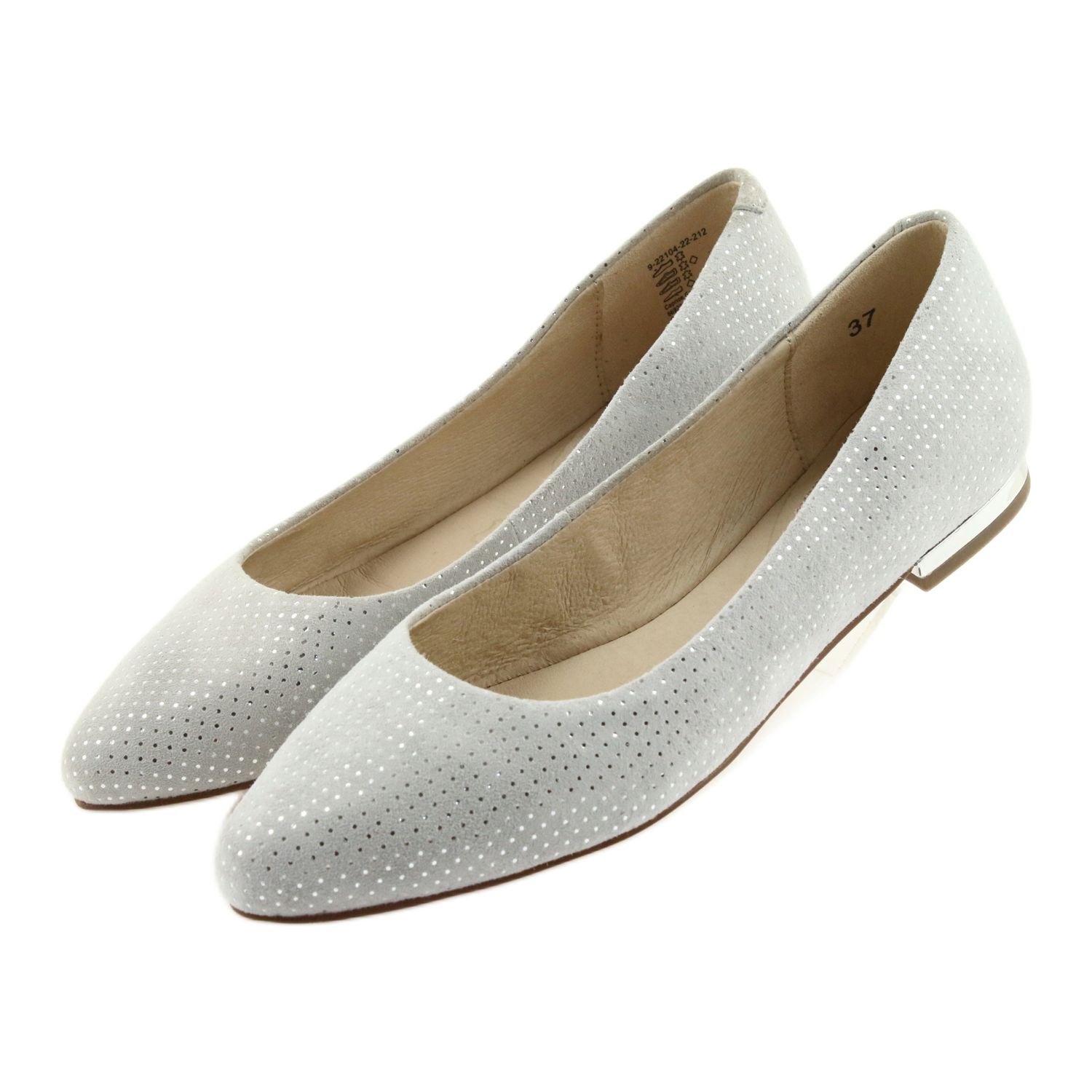 A 22104-es modell fontos előnye a természetes bőrből készült puha betét, amely egész napos viselési kényelmet garantál. Ezenkívül a stabil 1,3 cm-es sarok kiemeli a cipő eleganciáját a kényelem feláldozása nélkül. Ezek a balettlakások tökéletes példái annak, hogyan kombinálhatja a stílust a lábápolással.