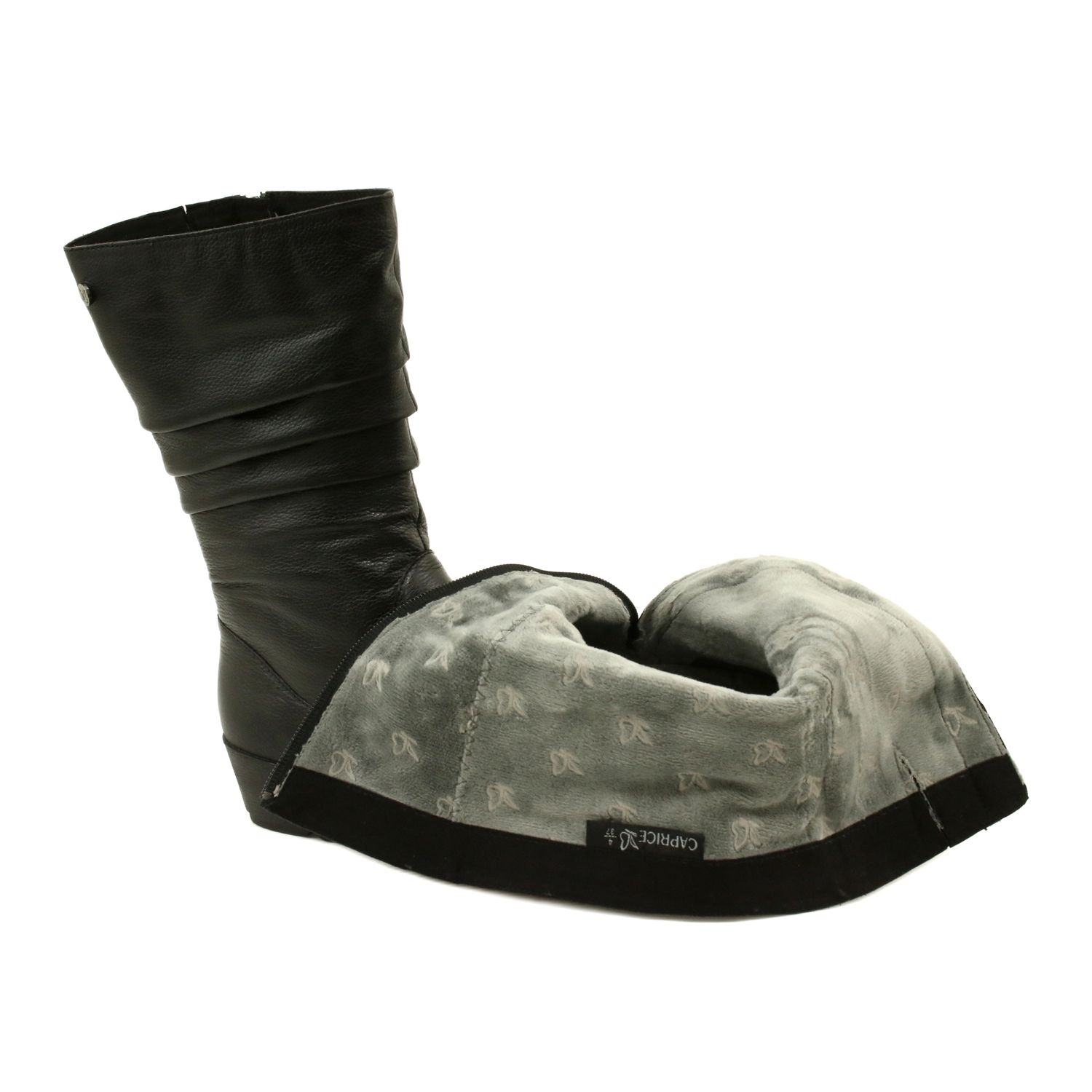 Ezek a klasszikus Caprice csizmák egyesítik az időtlen megjelenést a modern kényelmi megoldásokkal. Fekete gabonabőrből készült fekete, lágy szőrme és szövet betét - tökéletes a hűvösebb napokra. A "méhsejt" struktúrában levő légbetétekkel ellátott levegőrendszer séta biztosítja a kiváló légáramlást a cipő belsejében, és eltávolítja a felesleges nedvességet, és így a lábak frissek maradnak. Az egyedi kialakítás több mint 60%-kal javítja a talajjal való érintkezés értékcsökkenését, ami jelentősen növeli a viselkedés kényelmét.
