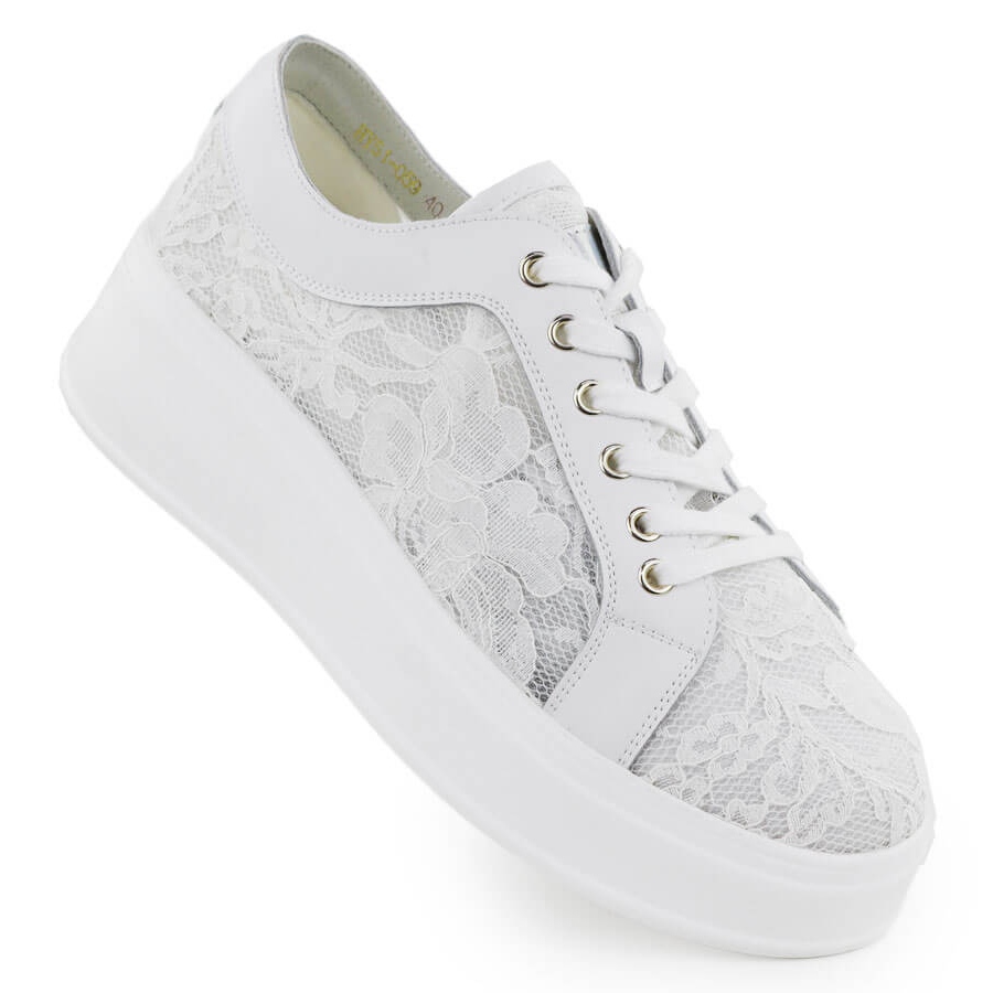A 4 cm -es kényelmes platformon beállítva ezek a cipők kiválóan alkalmasak mind alkalmi, mind formálisabb stilizációkhoz. A csipke részlete különleges varázst ad nekik, és a fehér színek szinte mindent illesztnek.