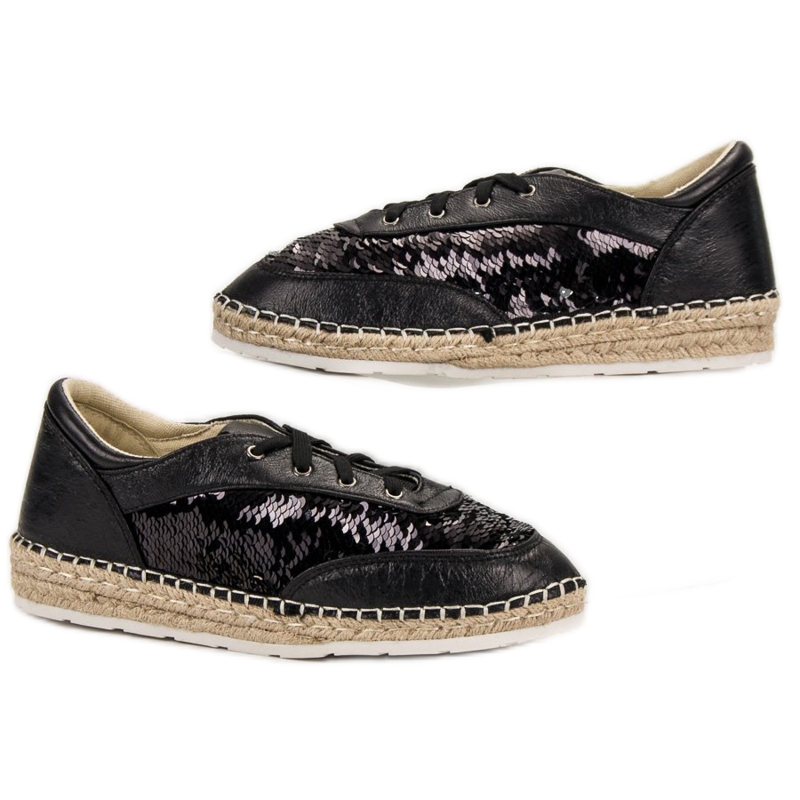 Íme egy tökéletes ajánlat a divatos lábbelik szerelmeseinek - VICES flitteres cipő elegáns fekete színben. Ezek a stílusos cipők minden bizonnyal felkeltik a figyelmet, és kitűnnek a tömegből, és ragyogást kölcsönöznek minden hétköznapi stílusnak.