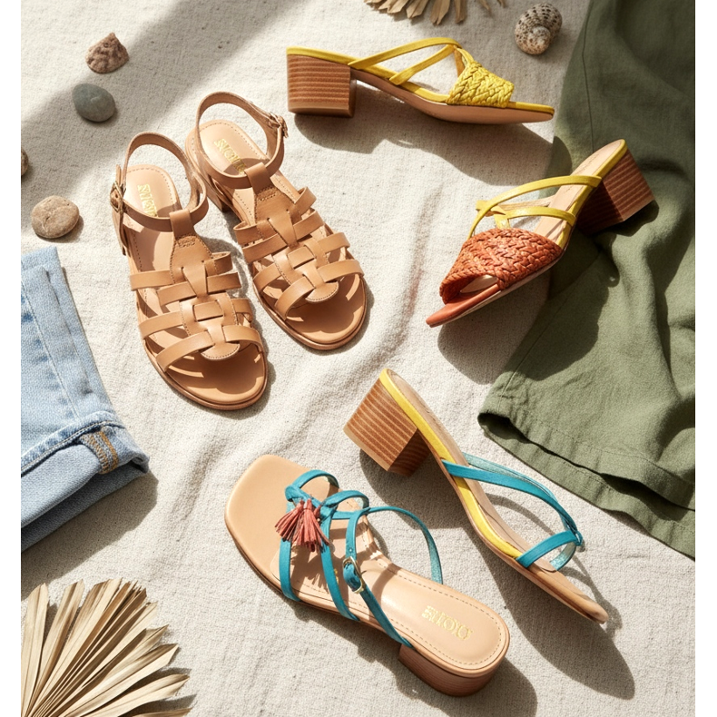A 2026 tavaszi szandálok és öszvérek színei a természet által ihletett paletta. A homok, a terrakotta, az olívazöld és a tengerkék árnyalatai dominálnak. A bátrabbak számára a tervezők élénk akcentusokat kínálnak citromsárga vagy intenzív korall formájában.