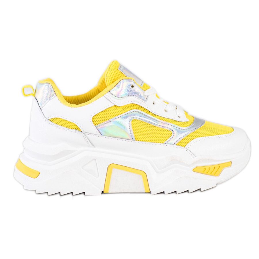 Részletek: SHELOVET Cipők a platformon hálóval fehér ezüst sárga