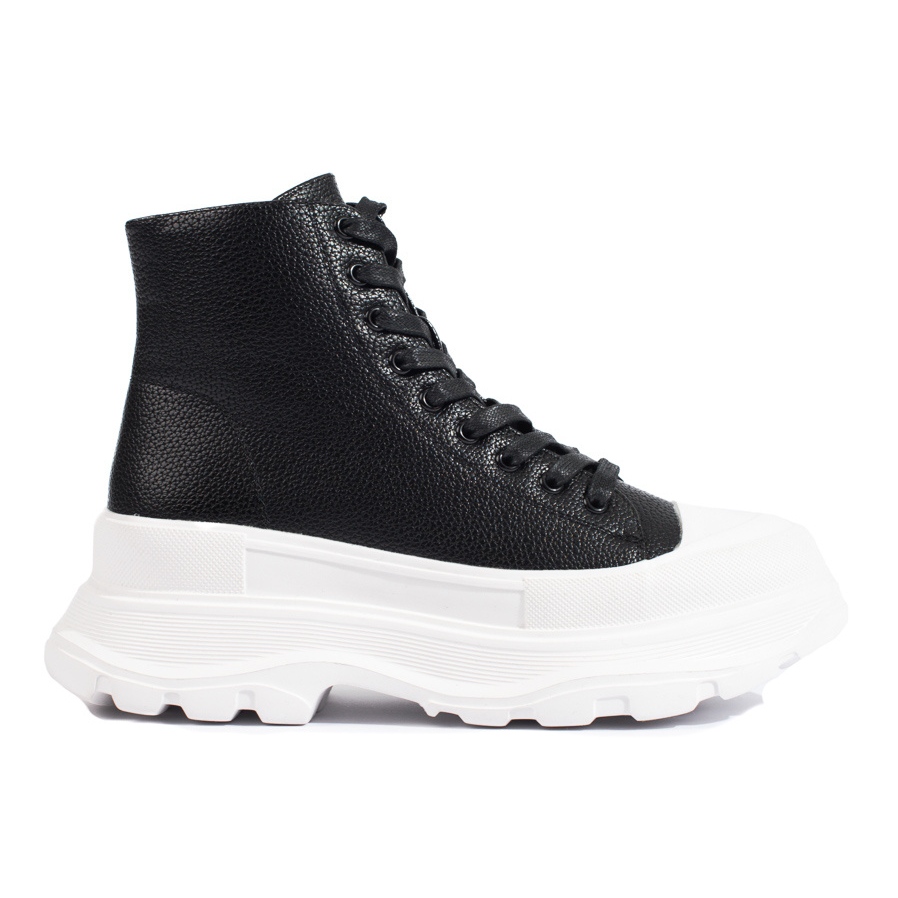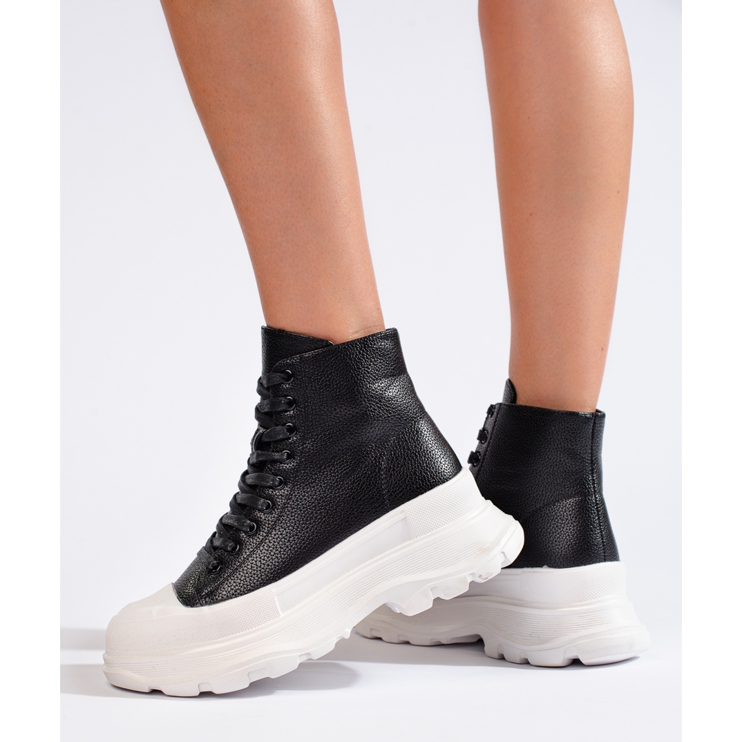 A műbőrből készült tornacipőket kiváló minőség és tartósság jellemzi, így tökéletes társ az őszi-téli időszakban. A sarokpult felépített és puha, amely hosszú órákon át is kényelmes viseletet biztosít. A futófelülettel ellátott műanyag talp kiváló tapadást garantál, a 6 cm magas platform pedig vizuális magasságot ad anélkül, hogy feláldozná a lapos sarok kényelmét.