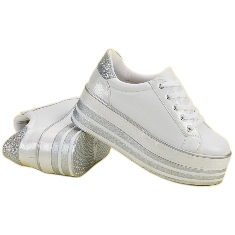 Fedezze fel a Weide márka egyedi platformos tornacipőit, amelyek tökéletesen ötvözik a stílust a kényelemmel. Ezek a fehér csillámos cipők tökéletes választások mindazok számára, akik szeretnének kitűnni a tömegből. A 6 cm magas platformnak köszönhetően a tornacipők nem csak optikailag hosszabbítják meg a lábakat, hanem egyedi karaktert adnak bármilyen stílusnak.