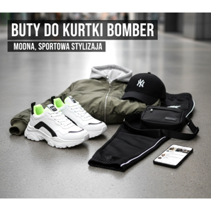 Érdemes odafigyelni a jellegzetes részletekkel ellátott tornacipőkre is - logók, csíkok vagy színes elemek, amelyek felpezsdíthetik az egész stílust. Ne feledje azonban, hogy ne vigye túlzásba a minták számával – ha a bomberkabáton már van nyomat, válasszon visszafogottabb cipőt.
