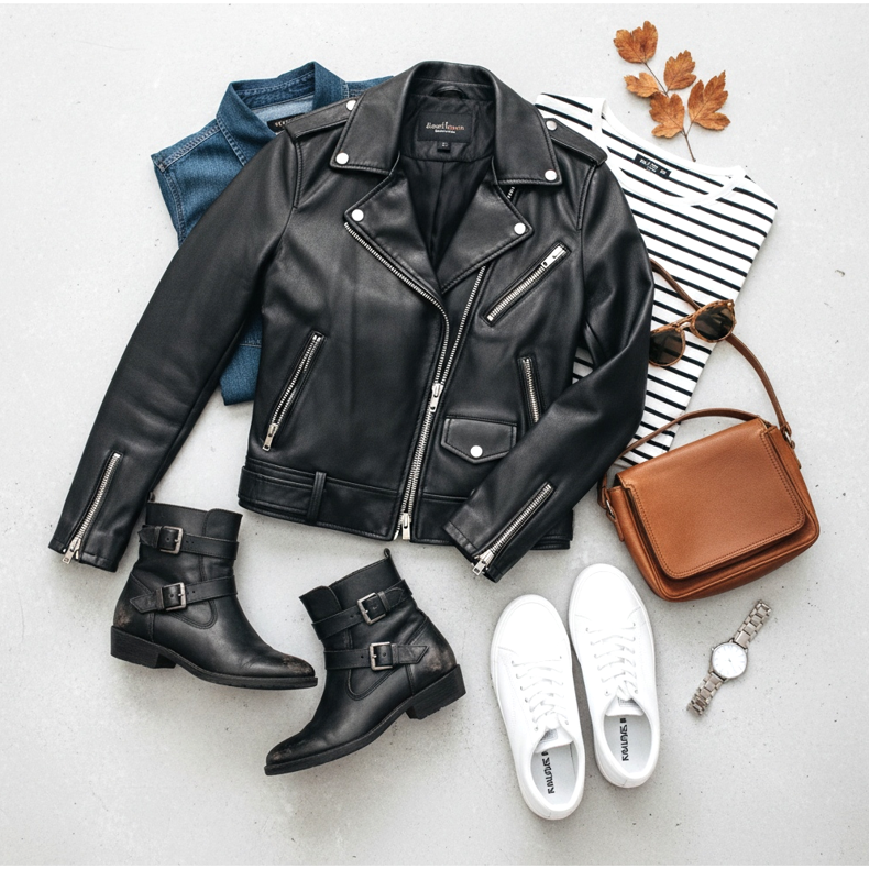 Mindennapi cipő bőrdzsekivel