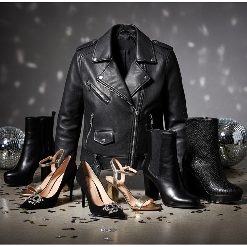 Bőrdzsekivel ellátott cipő bulira