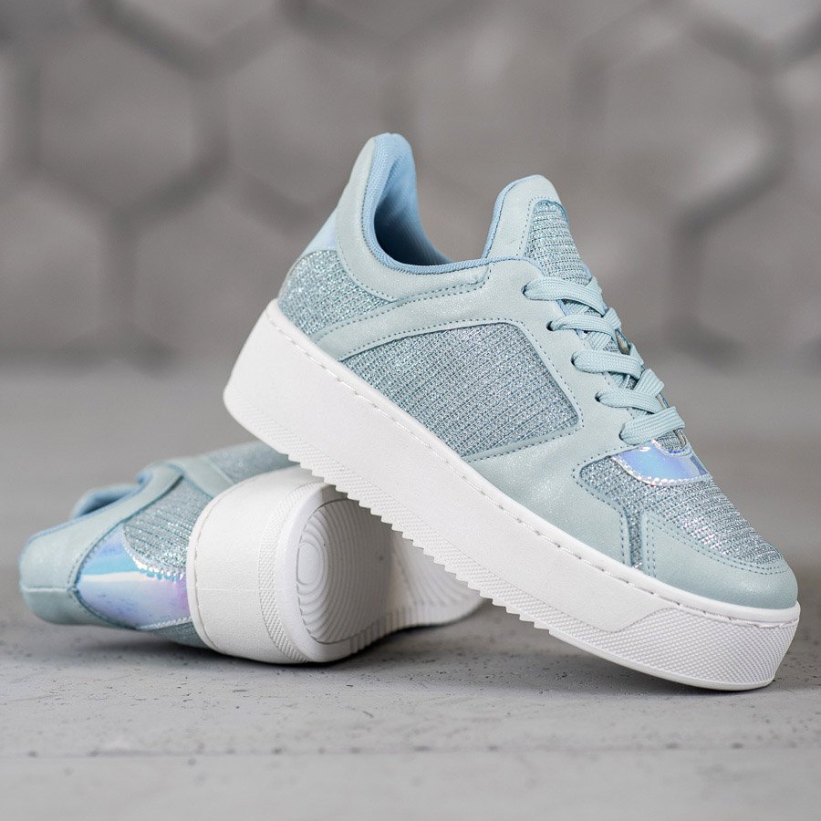 Az Ideal Shoes női tornacipő egyedi kék színben tökéletes választás azoknak a nőknek, akik egyaránt értékelik a kényelmet és a divatos megjelenést. Ezek a sportcipők tömör, fehér, 4,5 cm magas platformmal vannak felszerelve, amely tökéletesen elszigeteli a talajt, puha és kényelmes a mindennapi tevékenységek során.