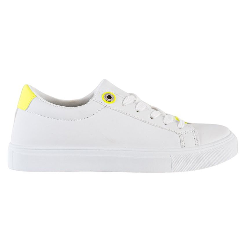 A fűzőkkel rögzíthető fehér tornacipők könnyen a lábfejedhez illeszthetők. Univerzálisságuknak köszönhetően tökéletesek lesznek farmerekhez és nyári ruhákhoz is, frissességet és könnyedséget kölcsönözve bármilyen stílusnak.